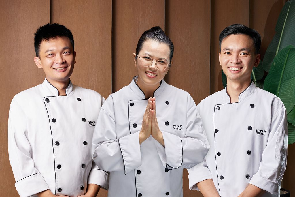 Asia49商業午餐由三位實力派廚師通力合作,左至右為台籍副主廚吳明祥、泰國籍王安妮以及馬來西亞籍華裔的林垠伸。(圖/Asia49提供)