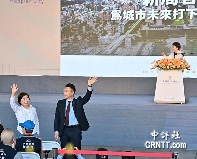 盧秀燕公平唱名有功人員,讓江啟臣、楊瓊瓔共同接受市民歡呼。(中評社)