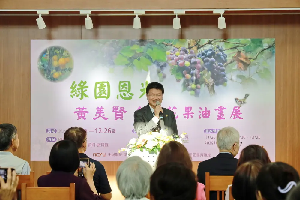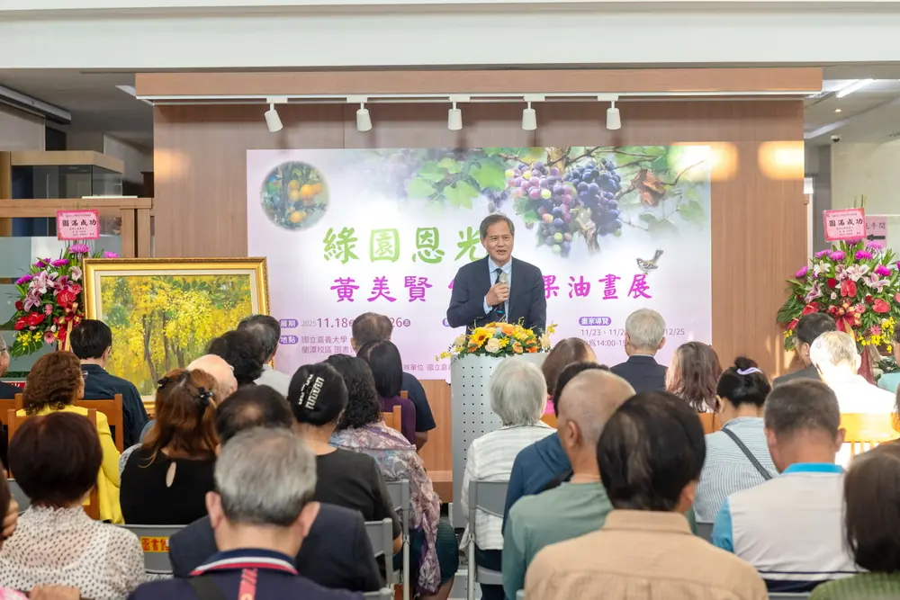 《綠園恩光黃美賢台灣花果油畫展》即日起於嘉義大學圖書資訊館一樓展覽廳展至1226日,並於1129日、1130日及1225日三場假日提供專家導覽(14:00–15:00)。嘉大誠摯邀請各界前往欣賞台灣田園之美。