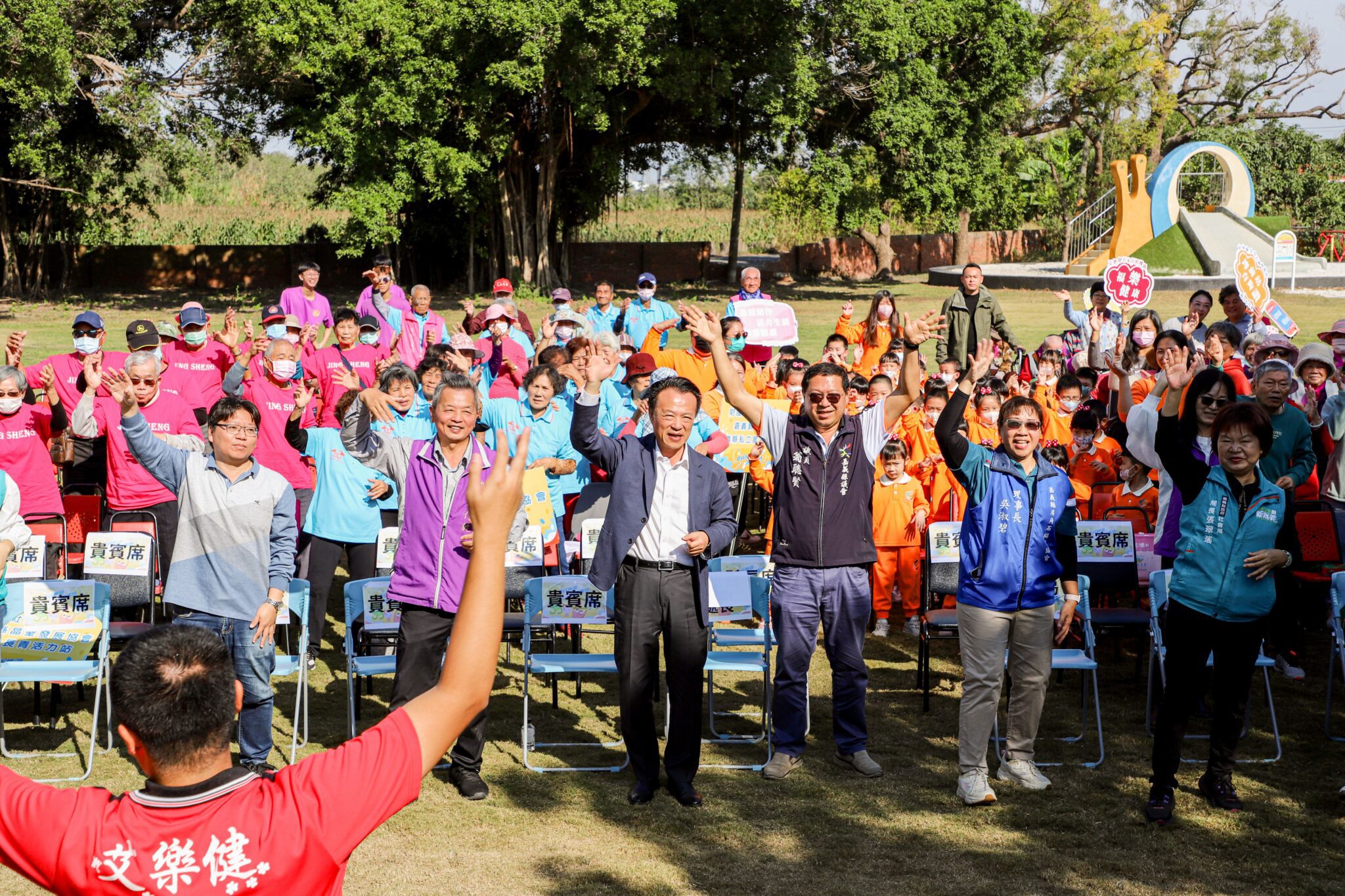 面對人口結構持續改變,凸顯衛生局與社會局的工作重要性,目前長照體系日益完善,投入長照產業的年輕人也一直增加,年輕老師們就像是長輩們的孫子孫女,帶著大家學習互動,這就是世代共融的特色,鼓勵長輩多使用長照資源,互相邀請到據點活動。