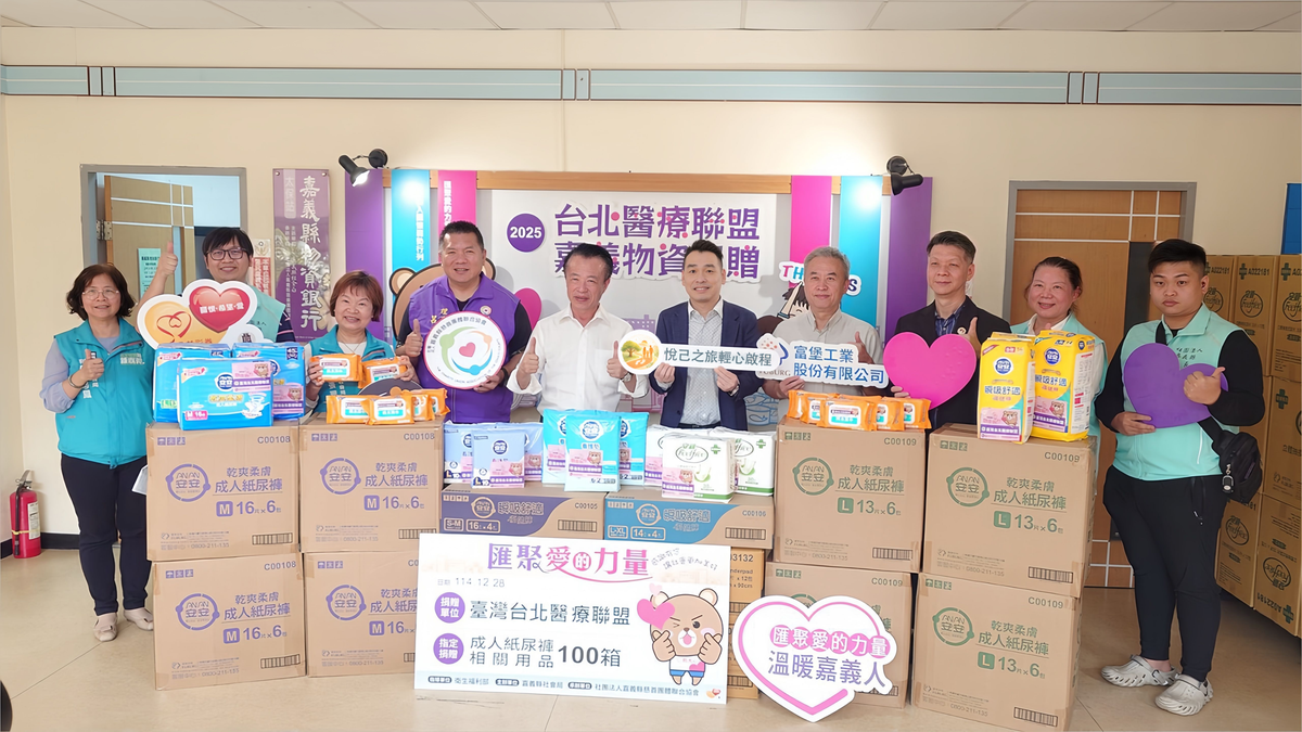 為關懷高齡長者及弱勢家庭在日常照護上的實際需求,臺北醫療聯盟上一年末舉辦「2025關懷物資捐贈活動」,結合企業、公益團體與社會志工力量,捐贈成人紙尿褲及相關生活用品共計百餘箱,將物資送往有需要的照護單位與家庭,實質協助第一線照護需求。