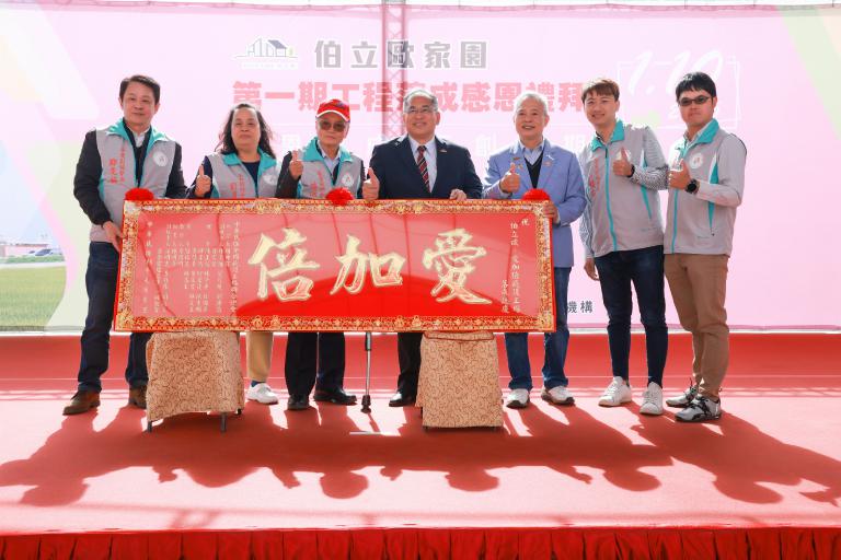 彰化縣長王惠美也親自到場見證這份喜悅,並為建物大門LOGO進行揭牌儀式,象徵伯立歐的精神正式在竹塘鄉這片土地上紮根、宣告守護使命的開始。她感性表示,人必自助而後人助之,感謝陳忠盛理事長為建立柏立歐家園打拼了14年,為的就是讓身心障礙者有終老的地方,伯立歐家園落成是彰化最美的人文風景。縣府將持續作為堅強後盾,與伯立歐攜手,讓更多身心障礙朋友在彰化找到安心幸福的歸宿,並開創自立自足的就業生活。