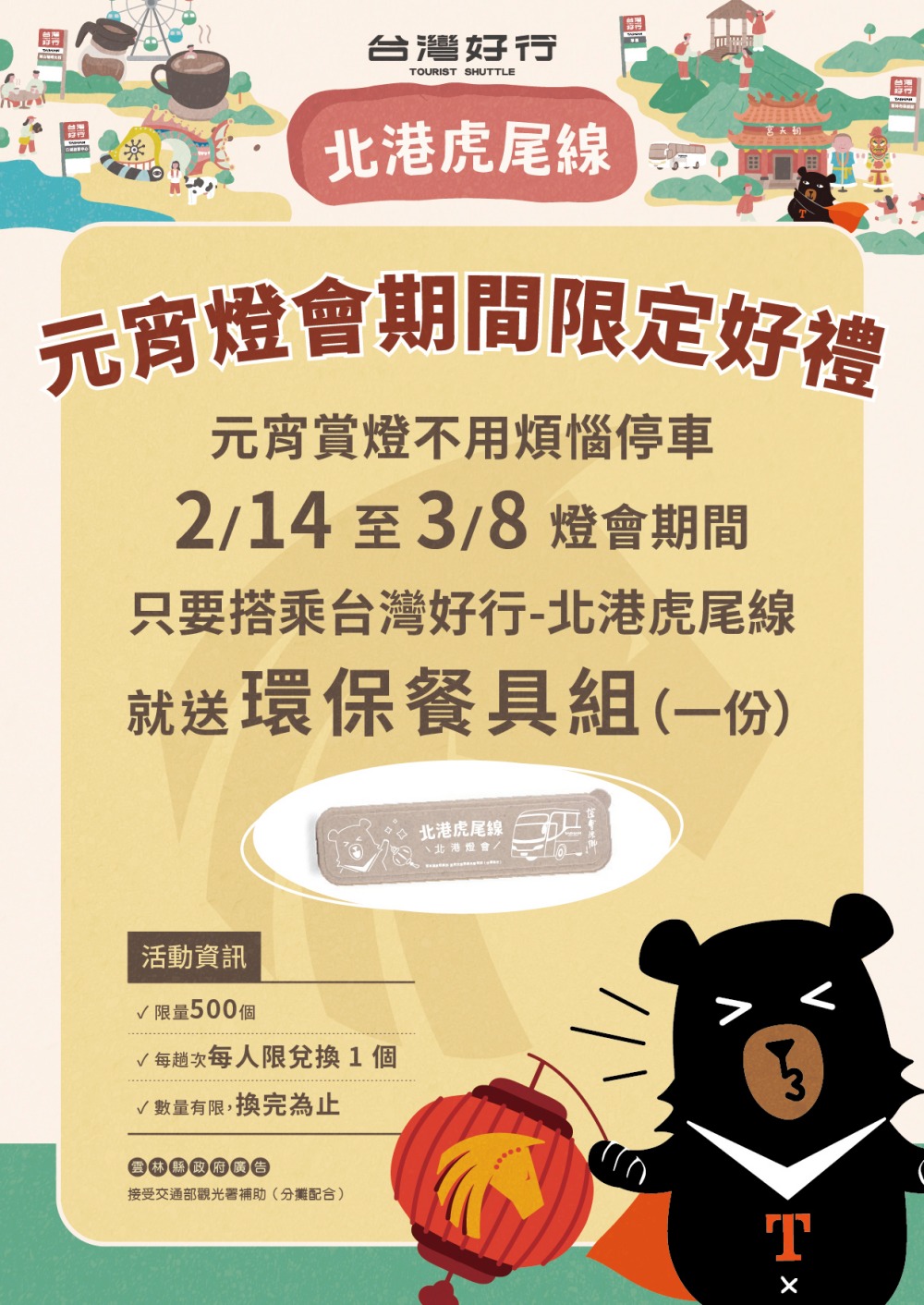 圖:北港燈會期間搭乘台灣好行-北港虎尾線就送限量環保餐具組!(圖/雲林縣政府文化觀光處提供)