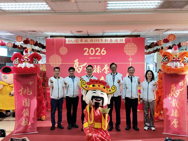 桃園市政府今(23)日上午在市府大廳舉辦115年新春團拜活動,市長張善政親自向市府同仁與退休前輩拜年致意,感謝大家過去一年對市政建設的投入與奉獻。他表示,面對國內外情勢快速變化與各項挑戰,市府團隊始終凝聚共識、分工合作,讓各項施政計畫穩定推展。新的一年也將持續強化橫向整合與行政效能,為市民打造更具競爭力與宜居品質的城市環境。