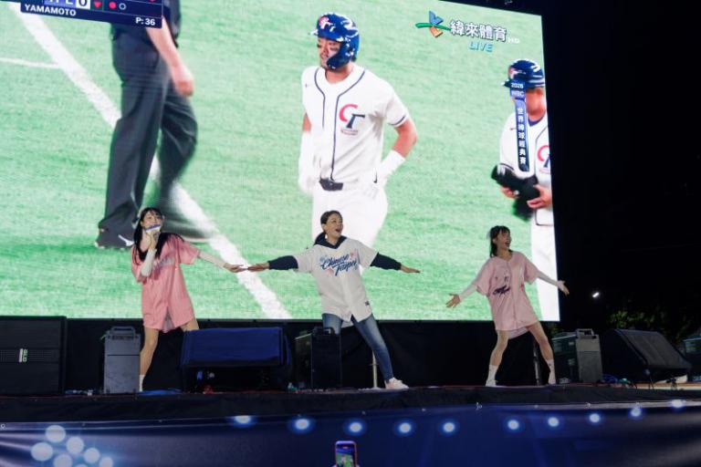 2026世界棒球經典賽中華隊第二場比賽出戰強敵日本隊,勤睿建設總經理溫國勝在後站停車場架設超大型銀幕
