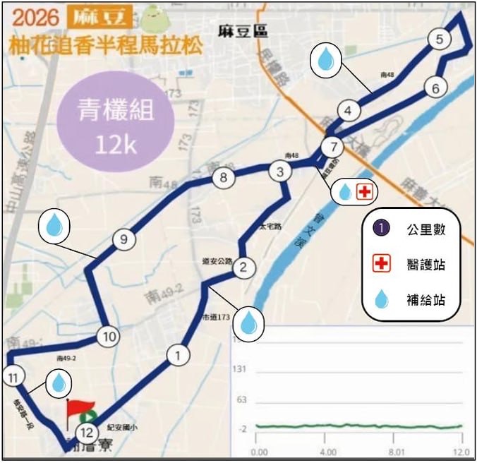 「2026柚花追香半程馬拉松─麻豆場」主賽事訂於115年3月15日(星期日)6時至14時,假本市麻豆區紀安國民小學(起、終點)舉辦,賽事預計自上午6時30分起分梯次起跑,沿線行經麻豆、佳里及七股等區,吸引超過1千名跑者報名參與。