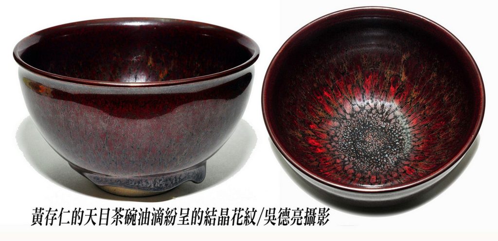 已故蔡曉芳大師在30多年前首開風氣,以點點光輝閃爍變化的天目碗令各界驚豔,此後又有陳佐導、劉欽瑩、邵椋揚、洪文郁、江有庭、曾冠錄、江玗、黃存仁、陳金旺等人投入,他們的努力不僅重現了北宋建盞的陳穩風貌,發展出不同的炫麗釉色,造型的變化更令人眼睛為之一亮,因此能迅速風靡對岸與日本,獲得極高的評價。