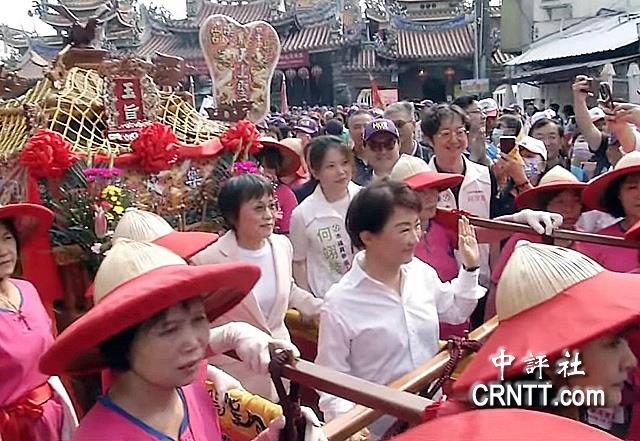 綜合報導/台中市東區樂成宮旱溪媽祖遶境十八庄祈福,今天上午起駕,年底台中市長藍綠參選中國國民黨籍立法院副院長江啟臣、綠委何欣純都出席恭送媽祖,兩人並分別有國民黨籍台中市長盧秀燕、內政部長劉世芳助陣,4人共同扶媽祖鑾轎出巡,藍綠2對2分庭抗禮。江、何上午出席旱溪媽祖起駕儀式後,傍晚也要出席大甲媽祖遶境入轎儀式,力拼曝光。 樂成宮旱溪媽祖遶境十八庄為台中市內歷史最悠久的媽祖出巡活動,更是藍綠台中市長人選爭取曝光的重要場合。 旱溪媽遶境範圍遍及市區、屯區,是全台天數最長的媽祖遶境,達22天,遶境行程涵蓋10區、116里,包括台中烏日區、霧峰區、大里區、太平區、東區、南區、南屯區、北屯區、北區、西區、中區等行政區域,因此被地方政壇視為“選市長必到”場合。 ![]() 今年旱溪媽遶境十八庄17日上午起駕,國民黨市長參選人江啟臣、民進黨市長參選人何欣純都出席,兩人一同恭送媽祖神像入鑾轎。台中市長盧秀燕循例擔任主祭官,今年較特殊的是,廟方邀請內政部長劉世芳參與,剛好形成“藍綠2對2”的平衡局面,展現微妙的媽祖政治學。