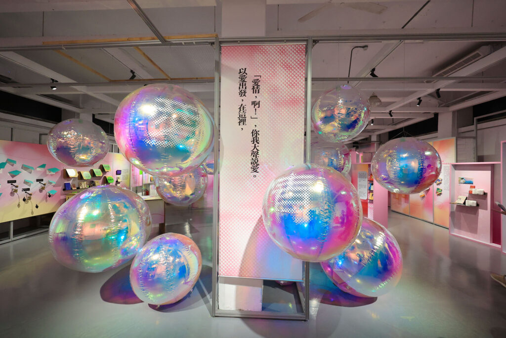 愛情,啊」特展於華山文創園區中二館一樓展出,為了讓觀眾驚艷,展場特別以甜蜜粉紅色為基礎色系,搭配閃亮大球與陳列,創意呈現作家書寫以及倪瑞宏、林淑鈴等位藝術家創作,也重現台北西門町常見的西門交友腳踏車,配置愛情青紅燈、偶像頻道等在七O年代台灣交友市場的筆友雜誌,讓觀眾跨進來就走進奇幻世界,想像愛情的百變,展現文字跨域魅力。