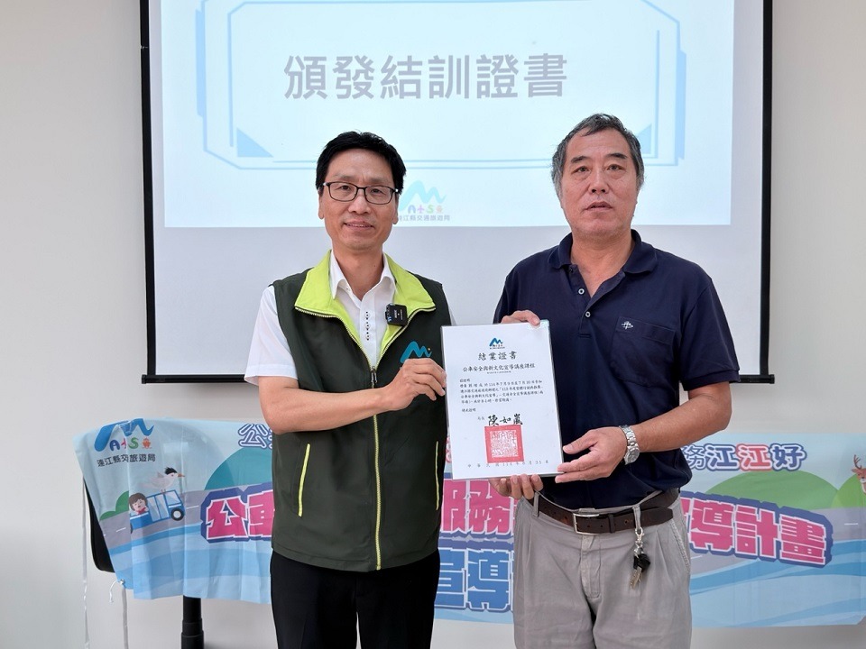 為全面提升馬祖地區公共運輸服務水準,建構更友善與安全的交通環境,連江縣交通旅遊局主辦「公車安全與服務新文化宣導講座」,於日前順利完成駕駛人員培訓,並舉辦結訓典禮。本次計畫集結了連江縣市區公車、台灣好行、幸福巴士及遊覽車駕駛與相關行政人員,展現縣府與公路總局致力於優化乘車體驗的決心。