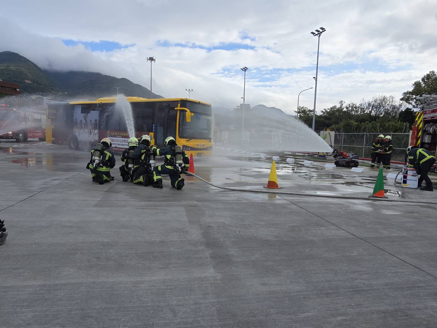 公運處表示,北投機廠共享充電場站平時由大南汽車管理,因鄰近捷運軌道,災害發生時,自動報警系統將同時通報大南汽車及北捷公司,有助第一線人員即時應變,在最短時間內向消防分隊完成通報;另為加強場站緊急應變能力,該場站備有移動式細水霧設備,本次亦由站務人員實際操練,能有效避免火勢擴散及蔓延。
