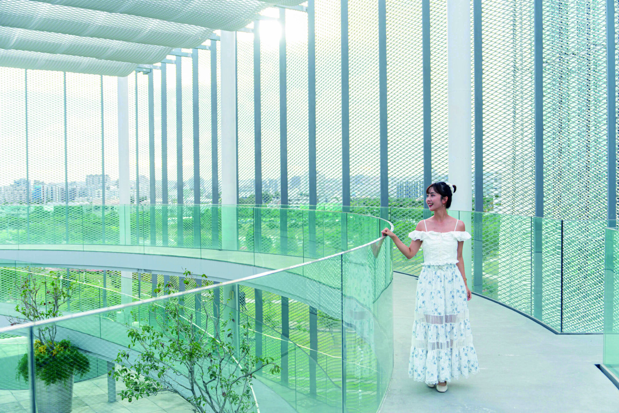 台中綠美圖內部大廳玻璃帷幕引進自然光,打造通透明亮的展覽空間