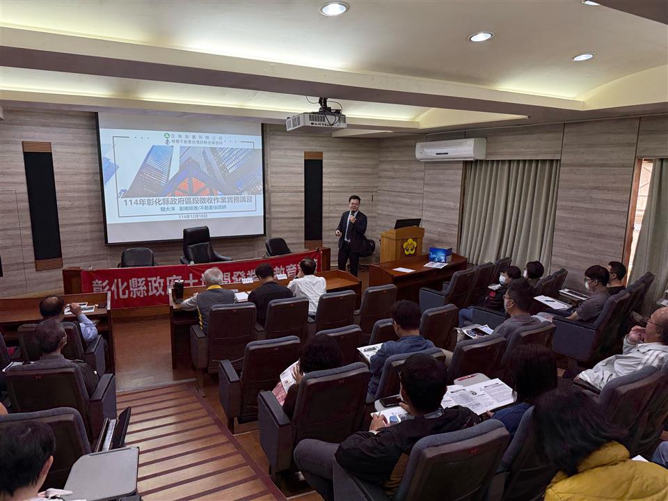 為增進彰化縣政府相關人員辦理區段徵收實務經驗暨提升同仁專業知能,彰化縣政府18日上午在1樓視聽簡報室辦理「區段徵收實務教育訓練」,邀請精豐不動產估價師事務所簡大洋估價師擔任講座,並邀集本府建設處、本縣各地政事務所同仁一同參與。