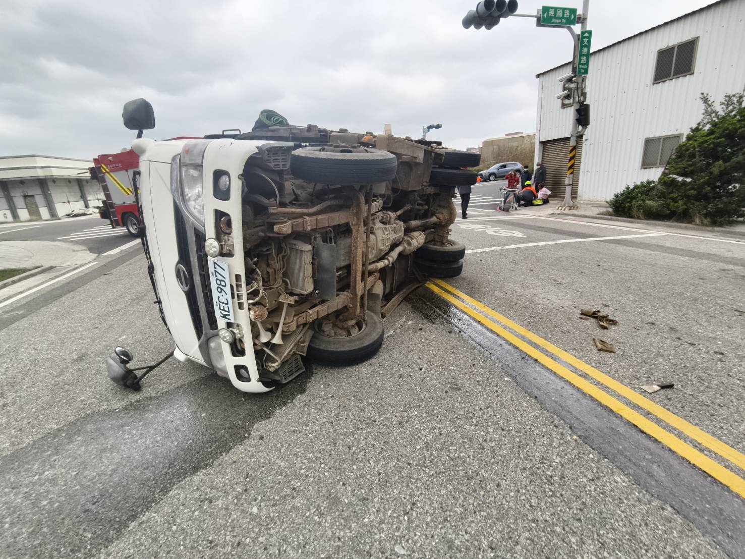澎湖兩車相撞小貨車翻覆! 兩人受傷送醫