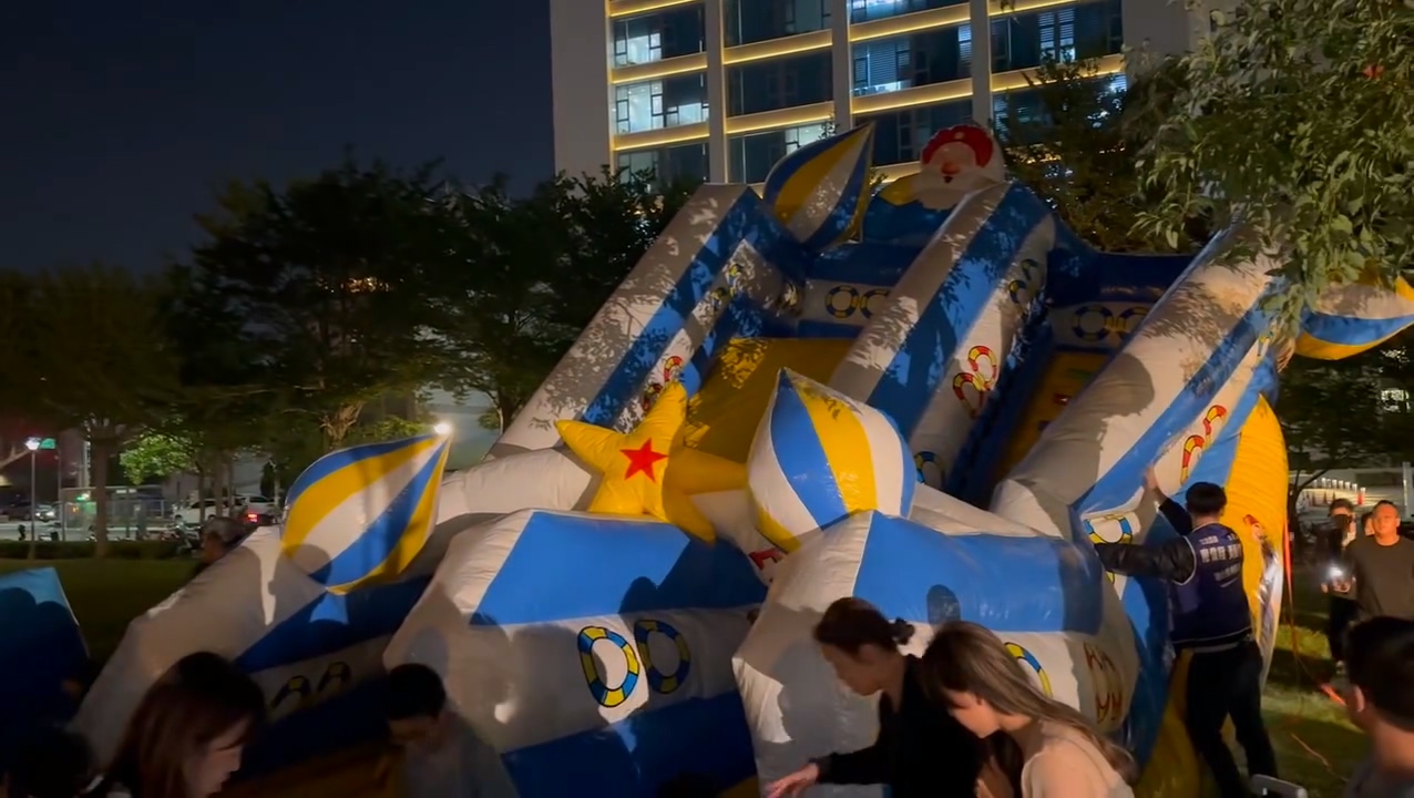 充氣城堡廠商發文指出,第一時間接獲通知後已立即到現場查看,確認是因為電線遭到外力扯斷所致(插頭直接斷裂),導致無法立即復電。現場也已向當時在遊玩的孩子與家長逐一確認,所幸皆無人明顯受傷。其中一位小朋友受到驚嚇在家長陪同下,已協助前往服務台的救護站做初步觀察,後續也有至醫院進一步檢查,目前經過醫生確認狀況良好無大礙。我們也持續與家長保持聯繫,關心孩子的情況。